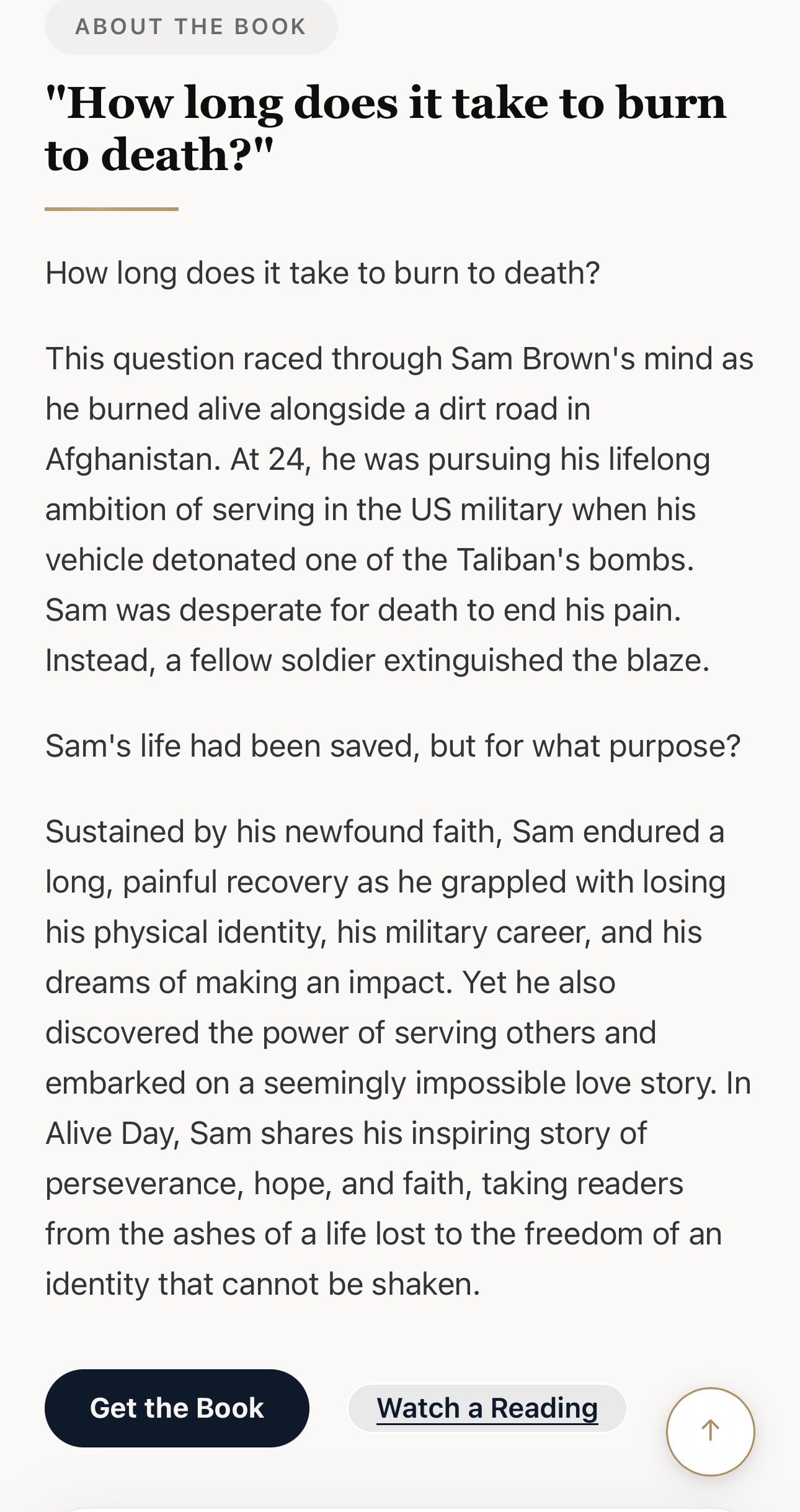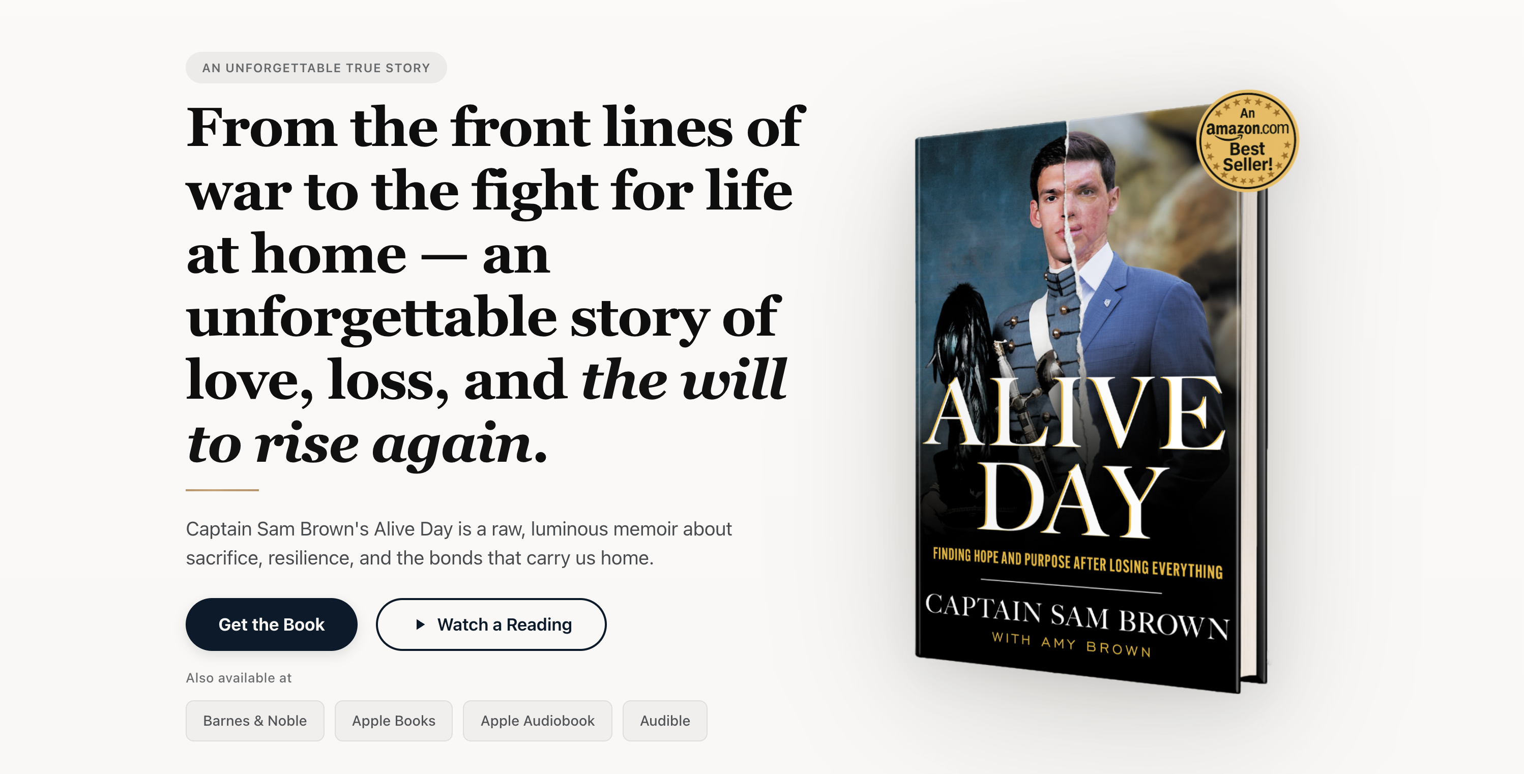 I developed the official website for Sam and Amy Brown's book Alive Day: Finding Hope and Purpose After Losing Everything, engineered entirely without templates. Built from the ground up with AI-assisted design, the site uses a custom layout to showcase their story through immersive visuals, interactive progression, and dynamic media integration. Visitors move through chapters of photos, excerpts, and video, reinforced by reviews and calls to action. The result is a purpose-built digital experience designed to capture attention and convert interest into book sales.